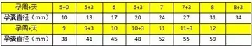 不同孕周孕囊直径参考不同孕周孕囊直径